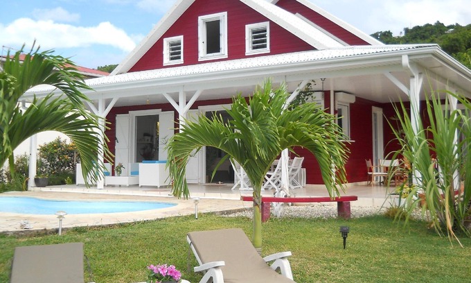 On the Caravelle peninsula, in Tartane, villa with swimming pool, seafront