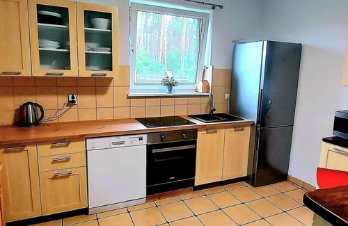 "Spacious holiday home in an idyllic location near the town of Nowe Warpno. There is a roofed terrace and a garden where you can relax and unwind overlooking the attractive settings. This place is ideal for a vacation with family or friends. The municipality of Nowe Warpno is located on the edge of the forest. The wide access to four lakes and the Zalew Szczecinski makes it an ideal place for tourists seeking relaxation in the middle of nature. Water sports enthusiasts, hunters, mushroom pickers and fishermen are in the right place here. The house is located in an absolutely quiet and idyllic location. The internet facility is available here, so you don't have to worry about work! Near the outdoor fireplace, you can enjoy delicious barbecue meals. The kitchen is also perfect for preapring tasty meals. The child crib is available too. Details: WLAN Not suitable for people with reduced mobility ""About Belvilla : """"At Belvilla, you experience holidays exactly the way you want. Choose from an extensive range of holiday homes, apartments and caravan parks from Europe to Florida. From a cabin by the Norwegian fjord to an exclusive villa on the Côte d'Azur, and from an apartment in Rome to a country estate in Tuscany. At Belvilla you will find the perfect holiday home for an unforgettable time with your family, partner or friends. You will also find holiday homes for larger groups, spread across various regions in Europe. Belvilla offers a wide variety of holiday homes: small and cosy with a sauna or spacious with an outdoor pool, roof terrace and numerous bedrooms. At Belvilla, for example, you can choose from holiday homes in prime locations, with luxury amenities and homes particularly suitable for families. Of course, many holiday homes also have a space reserved for your dog. You can choose from practical holiday homes in popular holiday destinations, city houses in cosmopolitan cities such as Venice or Rome, dreamy holiday homes in top locations and spacious holiday homes with unique furnishings. Besides holiday homes by the sea, Belvilla also offers holiday homes with swimming pool and/or wellness facilities."