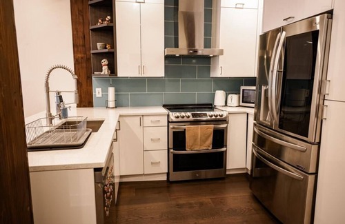 We have heated floors for winter, purified water tap, coffee machine for your mornings, kettle for some tea, controlled thermostat, Netflix and two. 50" screen TV's.