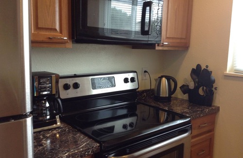 A totally remodeled townhouse with two super spacious bedrooms and 1.5 bath. This wonderful home has been totally renovated with beautiful tile floor and brand new stainless steel appliances. There are also brand new washer and dryer. It is an end unit in a, very quiet/peaceful place. The space is cozy and can accommodate 4 people There are oversize couches in the living room to offer extra sleeping places