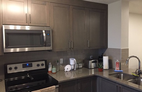 Brand new luxury modern town home a block from the South Health Campus in Seton, by Auburn Bay. Close to Spruce Meadows & Deerfoot Casino. Furnished with great attention to add to the guest's comfort. 2 bedrooms, queen bed in private common space, 1 sofa couch, comfortably accommodates 8. Queen size air mattress available. Beautiful Rocky Mountain views. Steps from shopping district with grocery stores, restaurants, beauty stores, banks and the new VIP Cineplex movie theatre. Easy access from Deerfoot Trail & Stoney Trail. Easy access to the airport.