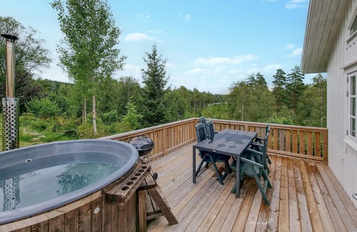 Welcome to this cosy holiday home in Gislaved, where relaxation and nature meet. This charming accommodation not only offers you an inviting atmosphere, but also a private hot tub for relaxing hours outdoors. The tastefully furnished interiors exude cosiness and invite you to relax after an active day. Enjoy the warm radiance of the wood and the harmonious design while you relax on the terrace with a view of the greenery.