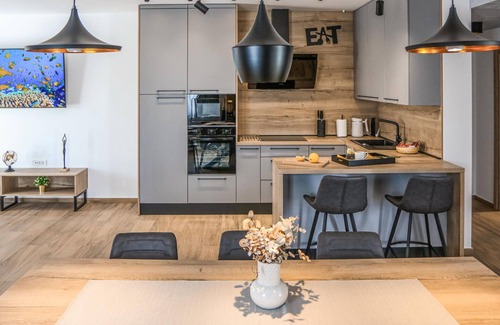 Welcome to your dream holiday. This luxurious holiday villa in Rokovci impresses with its unique location and tasteful design. The interiors offer you and your extended family an atmosphere of elegance and comfort, with a modern living area, a fully equipped kitchen and lovingly decorated bedrooms. Entertainment is provided by the activity room with table football, which guarantees fun for your whole family. The wellness area in the house with sauna and whirlpool ensures your complete relaxation. Simply leave your hectic everyday life behind you.