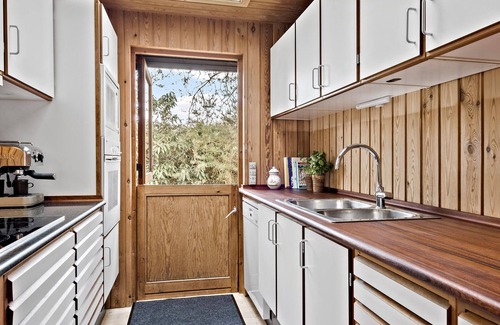 Situated on the west coast of Zealand, this vacation home welcomes you in a quiet location by the forest. The cozy kitchen invites you to cook with the whole family. In the living area, the many comfortable seating areas promise cozy hours with stimulating conversations or fun games. The natural wood paneling creates an atmosphere of peace and relaxation, and you can also enjoy a beautiful view of the forest. Make yourself comfortable with a book by the crackling open fire.
