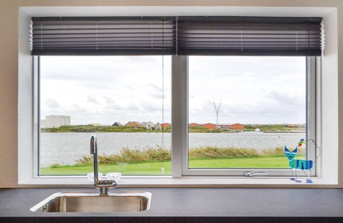 Fantastically situated vacation home with a view of the fjord. Almost on the shipping lane to Thorsminde lies this completely renovated vacation home. The non-smoking house has a bright kitchen-living room with a beautiful view of the shipping traffic in the fjord. In the house there are three good bedrooms and a modern bathroom. Outside you can enjoy the large terrace in front of the house, again with a view of the water. Partly a wall surrounds the terrace, it provides privacy. In front of the house the sun shines in the morning and afternoon. On the terrace on the other side of the house is evening sun. The house is very inviting. If you have done some fishing, you can use the fish cleaning place outside. Within walking distance from the house are trails for exercising, playing and moving around. In the harbor you should visit the St. George jetsam museum. Good shopping for daily needs can be done in Thorsminde. In the harbor of the village you can buy fresh and smoked fish. The fjord is suitable for surfers of any skill.
