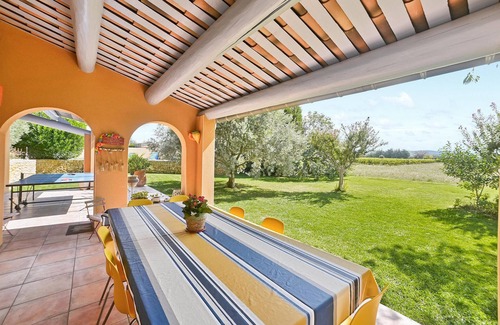 Discover this beautiful vacation home in Provence with private pool without opposite. This pleasant villa in Vaucluse has a beautiful 10m pool separated by a low wall in the garden and a large plot open to the countryside. In addition, a pétanque court and a table tennis table!