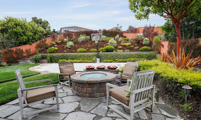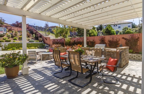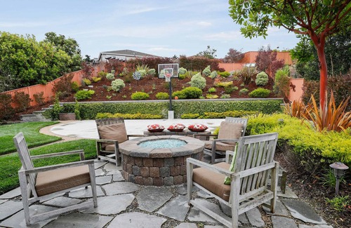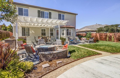 The home is 2,600 square feet, with 5 bedrooms, 3 full baths, 2 separate gathering areas, a gourmet kitchen, and an inviting backyard. California’s central coast is known for great weather, which enables our guests to enjoy the outdoors as much as the indoors. We’ve renovated and landscaped the fenced back yard to include a built-in island barbecue, gas fire pit, and half basketball court. There’s plenty of comfortable seating, both sunny and shaded. A vegetable garden with fresh seasonal herbs is available for you to snip and enjoy.