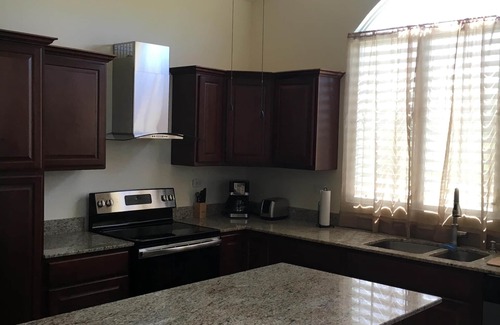 This home is fully furnished with kitchen appliances, furniture throughout, a backup GENERAC GENERATOR with an automatic switch and a backup 600 gallon STAINLESS STEEL WATER RESERVE TANK with an automatic switch. ALL BEDROOMS HAVE AIR CONDITIONING, including the common areas of the house, and ceiling fans in every room. The master bedroom has a queen sized bed, a private bathroom with double vanities and a large walk-in closet. The 2nd bedroom has a queen sized bed and the 3rd bedroom has [2] twin sized beds - both with wall to wall closets. You will enjoy the use of the washer/dryer located in the laundry room. On the second floor you can relax with the family and use our SmartTV or watch movies on the DVD player. DVD movies are also available for your use. You also have access to the beautiful terrace from the 2nd Floor.