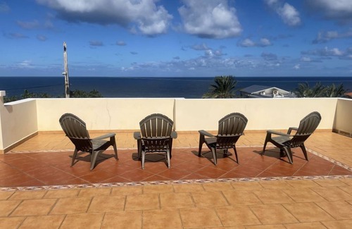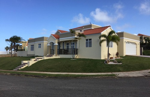 BEAUTIFUL OCEAN VIEW HOME located in a beautiful gated community in the Jobos beach cliff area of Isabela, Puerto Rico. Enjoy the view and the sounds of the ocean from your own private rooftop terrace during the day and the glittering and luminous view of the stars at night. Also, relax day or night in your own private pool and cabana with a full outdoor bathroom or head out to the many beautiful beaches along the coastline that are within 5 mins of our home for a day of surfing, scuba diving, snorkeling, swimming or just relaxing.