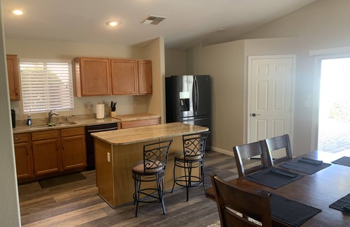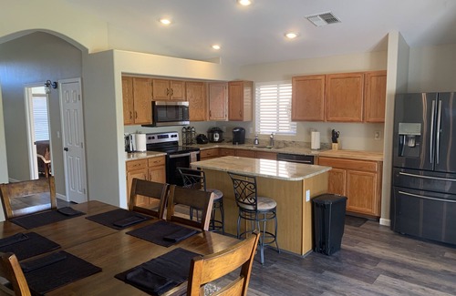 Nestled in the Ahwatukee foothills, this beautiful home has everything you need to enjoy your stay. Private pool, hot tub, grill and fire pit are here for your enjoyment. The home comes equipped with three bedrooms, with one bed able to be converted to a desk so the room can be used as an office. Just 20 minutes from the Sky Harbor Airport, and within walking distance to the grocery store, gas station and gym. Beautiful mountain views that you won't get in other locations. This is definitely a traveler's dream come true!