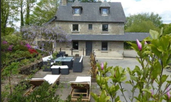 A beautifully renovated Mill Workers Cottage, nestled in a tiny hamlet in the heart of Brittany next to a 10 acre lake, (access and fishing available by request). La Notre sleeps 10 with 3 double and 1 twin bedrooms, 3 bathrooms and a double sofa bed in the observatory, a chance to take advantage of our clear night sky's and star watch with the in house telescope!. La Notre has a large private garden with outdoor kitchen/BBQ and dining area, its own private hot tub and heated swimming pool. The perfect venue for a family vacation.