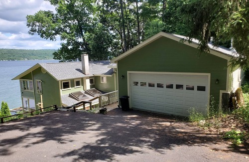 Cozy lake cottage with spectacular 150 feet of lake frontage, private docks, garage, and drive-to-door access. Significant discount for weekly and monthly rentals. Huge discount for multi month lease between October and May. Shale beach, 3 bedrooms (2 queen beds, 2 twin beds), 2 newly renovated bathrooms. Stunning, brand new kitchen with custom cabinets and stainless steel appliances. Panoramic views of the lake and fantastic views of Cornell, Ithaca College and South Hill. New furnishings, wall of windows in dining room and enclosed porch on top floor. Only 26 steps from the front porch to the beach. Long, private dock with pavilion at the end, allowing for spectacular views of Cayuga Lake. This lake home is unique for its proximity to Ithaca attractions - minutes away from Cass Park, Wegmans, and shopping/restaurants, 15 minutes to Cornell and 10 minutes to Ithaca College. Book now and enjoy your scenic Ithaca getaway! Significant discount for weekly and monthly rentals.