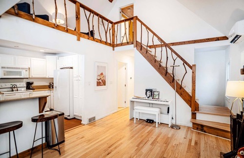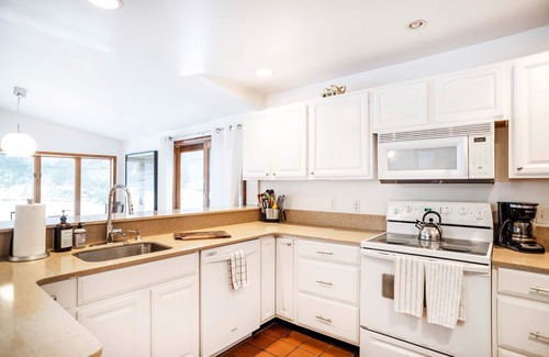 This is a wonderful lakefront house on a nine acre non- motorboat lake nestled up against the Shawangunk Mountain range. This two-level house has a beautiful open layout, and tons of light in the spacious common areas. The living room is all windows, facing out to the lake. The huge primary bedroom has en suite bathroom and the main level has two additional bedrooms, one of which has a full/twin bunk bed, the other has a lovely antique full bed. There's a deck, a patio and a private dock for fishing, swimming or boating—the house has three kayaks for guest use! The open kitchen is great for cooking and entertaining.