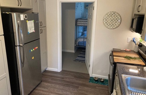 There is space for multiple families to stay - the master bedroom has a queen bed, second bedroom has a full bed with a twin above it. The second floor has a twin bed, a futon, a large sleeper bean bag, and plenty of space to set up any air mattresses or cots you may need. Washer and dryer in the basement are available for guest use. The kitchen is ready for any and all meal prep - oven, refrigerator, microwave, dishwasher, air fryer, coffee maker, etc.