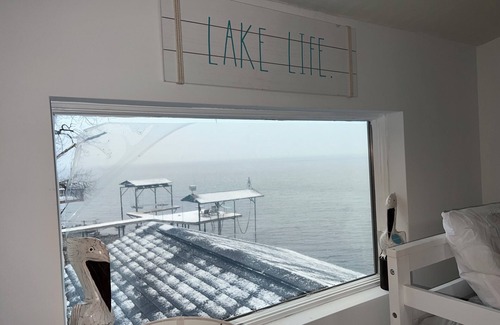 Come experience our beautiful sunrises and sunsets in a private and comfortable location for your family/group! Spacious nautical interior with heated floors and stainless steel appliances! Kayak off your own private dock onto the beautiful Cayuga lake! Bird watch and spot ducks, geese, swans, grebes, coots, cormorants, and every now and then, even local rarities such as American White Pelicans! Coffee pods included!