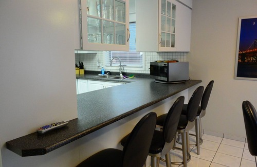 The home features a large fully equipped kitchen with dining area, three large bedrooms, three full bathrooms, and large backyard with decked outdoor eating area and gas grill. Bright and spacious office area offers all amenities for the business traveler including ample desk space with three office chairs, printer/copier, wifi and Ethernet connections, as well as a fully connected PC computer. Don't skip out on your workout routine, use our home gym equipped with treadmill, stationary bike, floor mat, bench, and more as well as a flat-screen TV to keep the boredom away. Keep yourself entertained with fully soundproofed entertainment area featuring ~10ft projection TV with Dolby Surround Sound with vast DVD movie collection and cable TV access. There is also a large well-lit billiards room equipped with pool table as well as flat-screen TV and gas fireplace to challenge and entertain yourself and others!