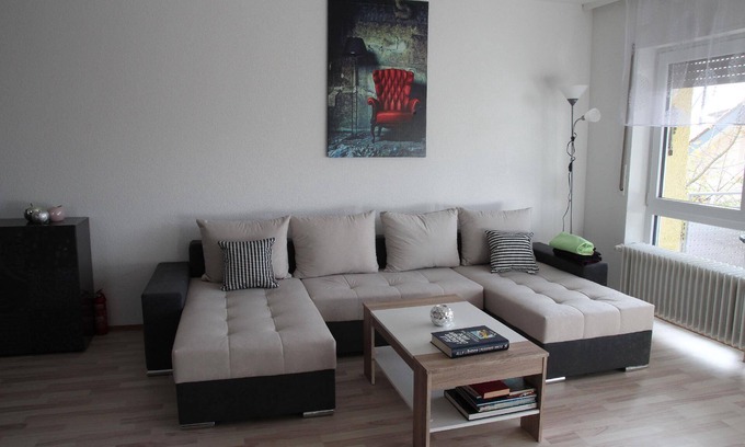 Beautiful guest flat in a favoured location. The flat has been freshly renovated. It is very bright and modern, whether for business people / fitters or simply for holidays, the flat offers just the right thing for everyone On the balcony you have a wonderful view of the greenery, after a minute's walk you are already in the forest, the flat is quietly located, our family also has cats. You will probably hardly notice them, but we advise people with a cat hair allergy not to rent the flat.