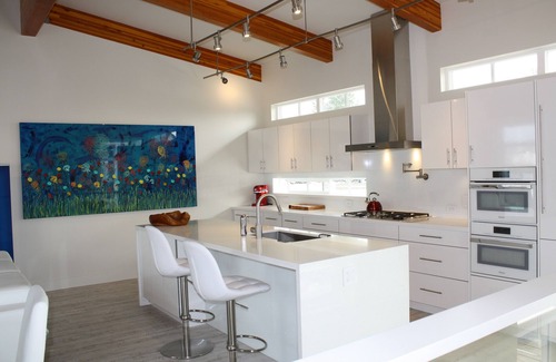 The float home is highly automated (lighting, heat, blinds), and can be controlled via wall switches, iPad (we leave one for you to use) apps, or using voice commands. You can AirPlay music to the upstairs great room, the master bedroom and master bathroom. You can also use all these things the old fashion way - by flipping switches.