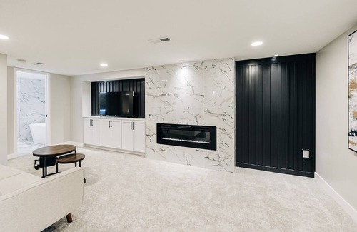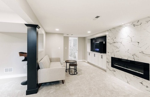 Fully "gut" renovated and reframed, it was transformed to a modern, luxury, open design concept but within a warm and comfortable home. Furnished with stylish modern decor features quartz countertops in the kitchen and second living room. Each of the 4 bedrooms has queen-size beds for cozy and relaxing sleep with plenty of closet space. Check out the designed accent walls in bedrooms and around the walls. Additional 2 couches offer alternative sleeping options. Watch your favorite shows on Roku HDTV in every bedroom room and living room. Complimentary washer & dryer in unit for your convenience. We are confident that you'll love staying in our home and experiencing all that Cottage Grove and the area has to offer. Book your stay today!