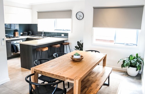 A modern, beautifully decorated 3-level townhouse which provides 3 spacious bedrooms sleeping up to 7 people ( 2 x queen & 1 with double bunk), and communal heated swimming pool. 10 minute walk to beach and perfect location for everything the Mornington Peninsula has to offer.