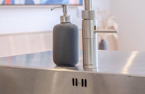 Newly equipped kitchen with quality Italian appliances. With an amazing tap that produces fizzy and boiling water, a wine cooler and a built in microwave, you'll feel spoilt for choice on things to use when cooking or relaxing. A large island in the middle and a dining table behind, this space is great for groups of friends or couples.