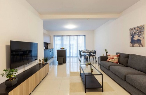 A brand new 2-bedroom apartment just steps away from the most sought-after seafront promenade in Sliema. Perfectly located with trendy promenade cafes, restaurants, boat tours, bus stops, and the bustling shopping center of Sliema all within a 10-minute walk. This brand new 2-bedroom apartment is situated in a modern block, just steps away from the most sought-after seafront promenade in Sliema. Perfectly located with trendy promenade cafes, restaurants, boat tours, bus stops, and the bustling shopping center of Sliema all within a 10-minute walk. It is simply ideal for couples or for a family with children. This bright, airy and fully air-conditioned high-standard accommodation comprises of a living/dining area, a fully-equipped kitchen, two double bedrooms, and two bathrooms. Wi-Fi internet access and cable TV are offered on a complimentary basis. The location of this property is unbeatable as it is only a few minutes' walk away from the famous Sliema promenade which offers you shops, cafes, restaurants, bars, water sports, beaches, and much more. And for those who prefer to swim in a pool, there are also a number of high-quality lidos nearby. If you don't want to rent a car, this apartment is simply ideal as public transport is just a short walk away. This is certainly the perfect holiday destination to feel at home in sunny Malta!