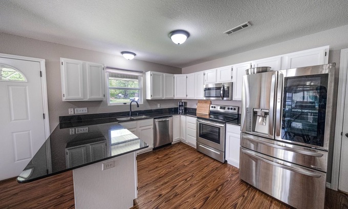 Experience the perfect blend of comfort and convenience at our charming retreat nestled in Springdale, Northwest Arkansas. Our modern home, adorned with local artwork, provides a unique and inviting atmosphere. The property comfortably accommodates up to 8 guests in spacious rooms, each featuring plush queen-sized beds ensuring a restful night's sleep.