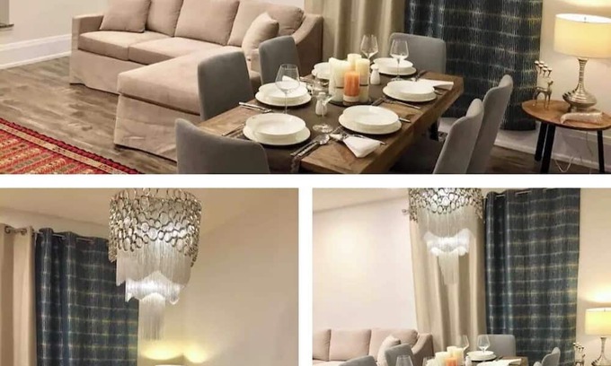 All furniture, mattresses, UHD smart TV 55” are brand new. There is a queen size bed in the master bedroom, a double size bed in the second bedroom, a queen and double size bed in the basement. Airbeds, floor mattresses are available.