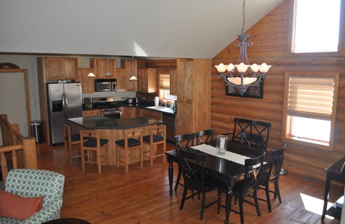 You will love this mountain home overlooking a small lake with amazing mountain views. Its spacious feel is both rustic and modern and it has all the amenities you will need. Easy access from the highway and on paved roads.