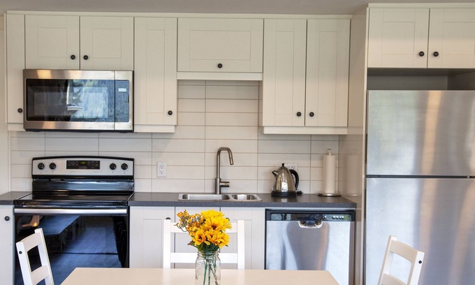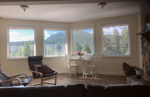 Located on the side of a mountain, our two bedroom suite has a beautiful view and has easy access. The open concept suite is newly renovated with a full kitchen, living room and two bedrooms . You can relax and curl up next to the fireplace and enjoy your day inside, or you can head out to enjoy the mountains, rivers and lakes all around you! To see the whole area you can take a 20 minute hike from behind our house up to the top of the mountain! This area is full of adventure and fun for the whole family!
