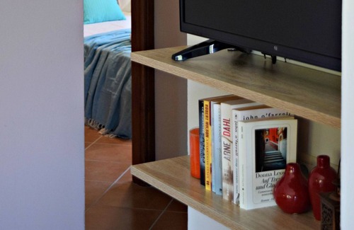 In the first floor, the kitchen communicates through a big stone arch that closes with a door, with a living room with two sofa beds, TV and a fireplace for romantic nights. The bedroom has a king size bed and a big wardrobe as well as a balcony. There is a large bathroom with a bathtub, wardrobe and a washing machine that completes the parts of the villa. Finally, the central balcony of the first floor is equipped with a beautiful dining table where you can enjoy your drink or meal in the breathtaking view.