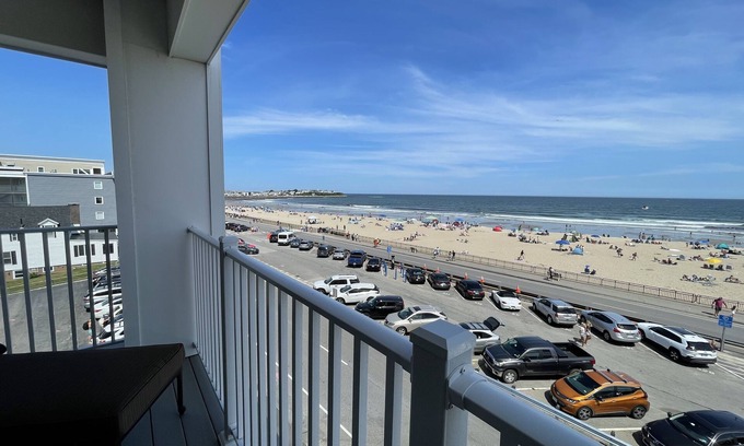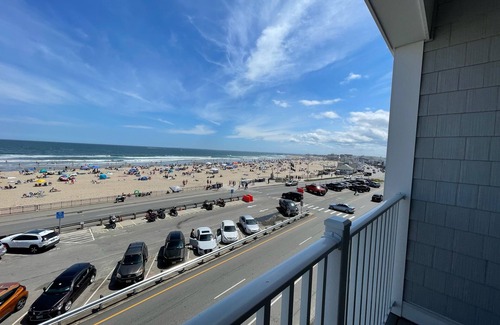 Beautiful Newly Built OCEANFRONT End Unit Condo - minimum 7 nigh stay (Saturday -Saturday May thru August). All new furnishings, fully furnished! 2-bedroom, 1-bath unit directly across from Hampton Beach with covered deck overlooking the ocean. Located in the Oceanhouse building at 315 Ocean Boulevard. Beautifully furnished with direct waterfront views. Queen-size master bed and 2nd bedroom with twin over full bunk bed. Hardwood flooring throughout unit. Washer Dryer in unit. Elevator access with 1 dedicated parking space out back in gated parking lot. Great location across the street from beach and steps away from everything on the beach: restaurants, arcade, live music, weekly fireworks, and nightlife.
