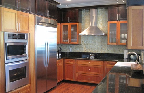 This is the developer unit with the largest fully equipped kitchen in the development. Large living room with a beautiful view of the ocean, 3 BR's, den, 2 1/2 luxury baths, sleeps 10 comfortably. Wood floors, glass designer tile throughout, california closets, covered parking with an additional parking spot. Upper and lower decks overlook ocean view. Flat screen TV's, cable, internet service. (Kitchen utensils, dishes and linens are plentiful). Security gate for privacy and peace of mind
