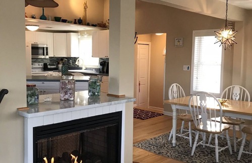 The upper level home accommodates 6 offering a lovely ocean view primary bedroom with new king bed and sliding glass doors to the deck with privacy shutters and 45" TV. The freshly appointed second bedroom has a queen bed with soothing color decor and both ocean and Ferris Wheel views. There are also queen- and full-size sleeper sofas in the living room, with Samsung 50" Crystal UHD TV, DVD Player (with selection of DVDs), Echo/Alexa with streaming Amazon music unlimited, under a vaulted ceiling along with a gas fireplace. The home has a fully equipped kitchen with icemaker and dining area with seating for six plus additional seating for four at the movable kitchen island. There is one full bathroom with large tiled shower and dual heads plus a half bath with washer/dryer.