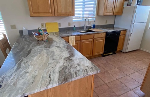 Spacious, newer, one bedroom, 1 bath suite, 9 ft ceilings, fully equipped kitchen, sleeps 4, includes a washer/dryer, 2 flat screens, cable, free Wi-Fi, all utilities, steps away from the resort pool and jacuzzi. Nestled between two golf courses, close to rec centers. GVR available to tenants. No smoking, no pets. Green Valley was voted one of the top 10 retirement communities in the nation. Come see why! Great hiking, golf, pickleball, beautiful sunny weather all year long. Get away from the cold and snow! Come see why we were voted one of the top ten retirement communities in the nation. We offer short or long term stays. Please call for rates if longer than one week.