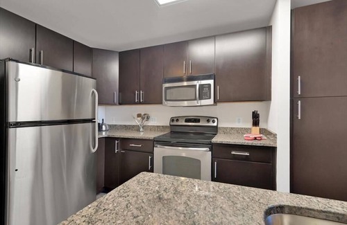 Luxury Suites at Metropolitan Park offers a world of comfort & convenience. At the center of National Landing Business, you’re set in Crystal City, Pentagon City, and Potomac Yard. Throughout the apartment, you will find modern conveniences, colorful artwork, crisp bedding & stainless steel appliances.