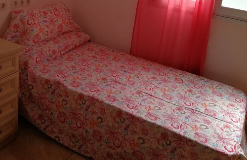 6th floor last, two bedrooms a large bed another bed peq. and large sofa to sleep another person in the living room, air conditioning, washer dryer. in the middle. 300m beach and natural pools. I speak english too. full flat 6th one bed big size and one bed short size and sofa. for four people. yes quick animal. to 300 m there are natural pools, and to 2 kilometers in car or bus there are beachs. I speak enghish.
