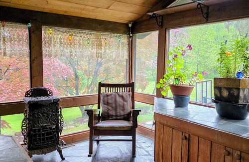 65 acres of Picture perfect old oak, Pine, Apple, Cherry, and Maple trees just to name a few. This is a quiet and private retreat...a beautiful hideaway for nature-lovers, hikers, artists, and bird, deer, Hawk, and turkey watchers or simply those who choose to relax and enjoy quiet time and perhaps star gaze while taking a dip in the spa hot tub. Cafe lights strung about as if they were their own starry sky.