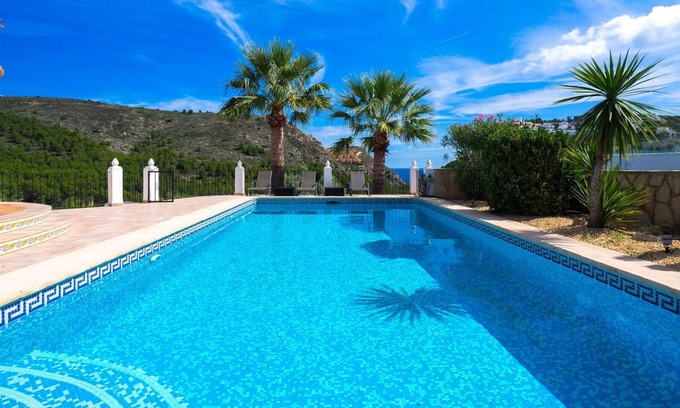 Beautiful villa "Manana", 2 storeys. In the resort 2.4 km from the centre of Moraira, in a quiet, sunny position residential area (villas), traffic calmed area, 2.7 km from the sea, 2.7 km from the beach. Private: property 980 m2 (fenced), beautiful garden, swimming pool (10 x 5 m, depth 120 - 200 cm, seasonal availability: 01.Jan. - 31.Dec.). Outdoor shower, arbour, barbecue, parking (for 3 cars) on the premises. Supermarket 1.5 km, restaurant 2 km, sandy beach "Playa del Portet" 2.1 km, rocky beach "Cala Moraig" 5.3 km. Sports harbour 2.7 km, marina 2.7 km, golf course 5.5 km. Nearby attractions: Aqualandia, Mundomar, Terra Mítica, Terra Natura, Benidorm Palace (Benidorm), Les Fonts de l'Algar.