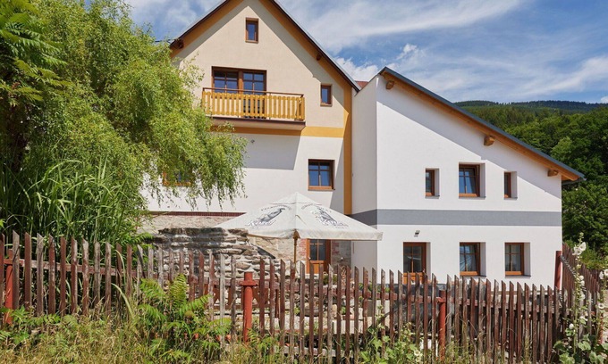Beautiful private villa for 15 people with WIFI, TV, balcony and pets allowed is located in Cerny Dul. Beautiful private villa for 15 people with WIFI, TV, balcony and pets allowed provides accommodation, featuring Parking, Pet Friendly, TV, among other amenities. This Villa features Parking, Pet Friendly, TV, to make your stay a comfortable one.