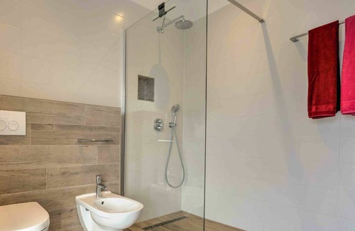 Pobri: Single-family house "Races", 3 storeys, built in 2017. Above Opatija 2.5 km from the centre of Opatija, in a quiet, sunny position, 2.5 km from the sea, 2.5 km from the beach, in a cul-de-sac. Private: property 1'000 m2 (fenced), lawn 200 m2, swimming pool angular (7 x 4 m, 30 m2, depth 140 cm, seasonal availability: 01.May. - 15.Oct.). Outdoor shower, hot tub, terrace (12 m2), garden furniture, barbecue. In the house: internet access, billiard table, table football, washing machine. Parking (for 5 cars) at the house on the premises. Shop 150 m, restaurant 2.5 km, pebble beach 2.5 km, public bathing area 2.5 km, concrete beach 2.5 km. Youth groups are not allowed. Organizing a party is not allowed. Video surveillance of the property. Hot tub heating extra in the period 15.10.-01.05 in other periods included in the price. The unit consists of 2 houses rented as one unit. Private: terrace 12 m2, outdoor kitchen (4 hot plates, fridge), swimming pool (35 m2, depth 140 cm, 01.05.-15.10.). Unconventional pool shape.