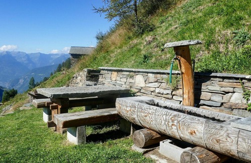The house offers wood heating and solar power. Outdoors, you can enjoy a large terrace with terrace furniture for two guests, providing a marvelous panoramic view of the mountains and the valley. Please note that this property is not suitable for children under 8 years old and is a non-smoking house. Additionally, there is no internal connecting door between the floors, and a fire extinguisher is available. Nearby attractions include cycle path no. 389 and an intensive network of paths, with the area offering magnificent views overlooking the Malvaglia Valley and its side valleys. Access to the property involves driving 18 km from Malvaglia and then walking for 7 minutes.