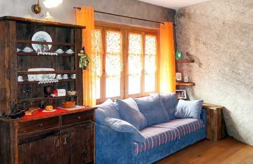 Civo 5 km from Morbegno: Beautiful, rustic cottage "Rustico Vigna", 475 m a.s.l., surrounded by meadows and vineyards. In the district of Santa Croce 1 km from the centre of Civo, on the outskirts, 5.5 km from the centre of Morbegno, 31 km from the centre of Sondrio, on a slope, 21 km from the lake, in the countryside, south facing position. Private: property, terraced garden (not fenced) with lawn and wildlife garden, meadow, orchard, swimming pool kidney shaped, heated (10 x 4 m, depth 135 cm, seasonal availability: 15.Apr. - 15.Oct.) with internal staircase. Outdoor shower, arbour, garden furniture, barbecue, barbecue house. 150 m footpath to the house. Parking on the premises. Shop 2.6 km, supermarket 4.5 km, restaurant 2 km, railway station "Morbegno (Milano-Sondrio)" 5 km, sandy beach "Sorico 'La Punta': Lago di Como" 21 km, grass beach "Colico: Lago di Como" 23 km, indoor swimming pool 5.5 km, thermal baths "Bagni di Masino" 21 km. Golf course (9 hole) 25 km, walking paths from the house 100 m. Nearby attractions: Castello di Domofole 6 km, Bosco Magico di Dazio 4.7 km. Well-known lakes can easily be reached: Lago di Como 21 km. Hiking paths: Civo: Fraz.Poira-Monte Spluga (2845 m) 7 km, Val Masino: San Martino 20 km, Val Gerola (del Bitto): Pedesina 16 km. Please note: pool/garden maintenance by the owner.