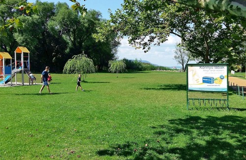 Balatonmáriafürdő: "Marie" is a beautiful single-family holiday rental located in a central and quiet position, just 500 meters from the lake. The property offers a spacious 500 square meter fenced yard with a well-maintained garden, lawn area for sunbathing, and Internet WiFi connection.