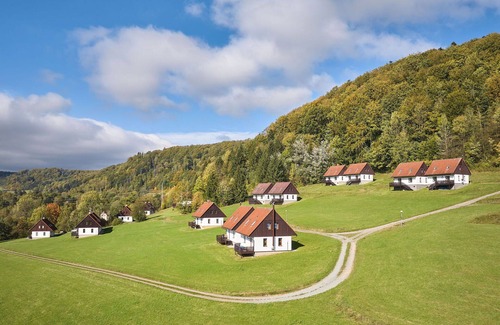 The Stárkov resort offers a detached, renovated vacation rental situated in a scenic, elevated position surrounded by meadows and wooded areas near Nové Město Nad Metují, Czech Republic. Enjoy amenities such as a seasonal swimming pool, yard, internet WiFi, parking, and tennis court on the resort premises. The accommodation provides a comfortable and peaceful escape amidst the beautiful Czech countryside.