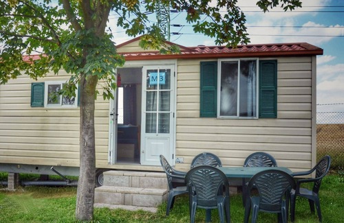 TrioCamp is a child-friendly, cozy holiday village surrounded by trees in a sunny countryside position on the outskirts of Praha/Dolní Chabry, Czech Republic. The vacation rental features a shared fenced property with a seasonal swimming pool (8 x 4 m, available from May 11 to September 7), yard, Internet WiFi, and parking.