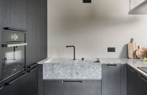 The open kitchen is fully equipped with an oven, dishwasher, 6 induction hot plates, toaster, kettle, microwave, freezer, and electric coffee machine. There is also a separate WC on this level. On the lower ground floor, you'll find another living room with satellite TV and direct access to the terrace. This level also has a bedroom with a french bed (180 cm, length 200 cm), a shower/WC, double hand-basin, and satellite TV, as well as another separate WC.
