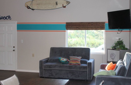 Come bring your family and enjoy Sunny San Diego in our large four bedroom 4.5 bathroom plus separate guest house vacation retreat. This beautiful home is situated in a gated community on 2 lush acres and has full access to the resort-like back yard including swimming pool, waterfall, jacuzzi, fire pit, basketball area, viking grill, and a spectacular wood fire pizza oven. The evening lights and ambiance is perfect for entertaining! This north San Diego county suburb has a country feel and is walking distance to several different trails, including beautiful Lake Poway, where you can feed ducks, go fishing, hike to the famous potato chip rock, or rent a paddle boat. Only 30 minutes away are some of America's finest beaches, the world famous San Diego Zoo, Seaworld, Legoland, Balboa Park, Gaslamp district, and so much more! Inside the main house, you'll find a full sized kitchen stocked with everything you need to feed and entertain your group, washer/dryer, and 4 bedrooms plus 2 pull out beds accommodating 12 comfortably. The guest house has its own kitchen, bathroom, and sleeping for an additional 5. Go spend the day at the beach and feel free to use our surfboards, boogie boards, snorkel gear, beach chairs, coolers, umbrellas, and sand toys. All linens and beach towels are provided, so come out and get ready for a beautiful stay here in America's Finest City.