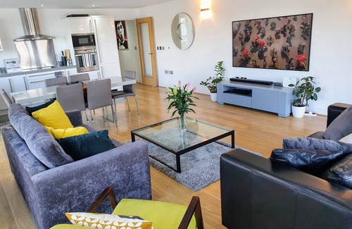 This contemporary and stylishly decorated riverside two double bedroom, two bathroom luxury apartment is situated in the heart of Greenwich, a vibrant, beautiful and historic part of London.