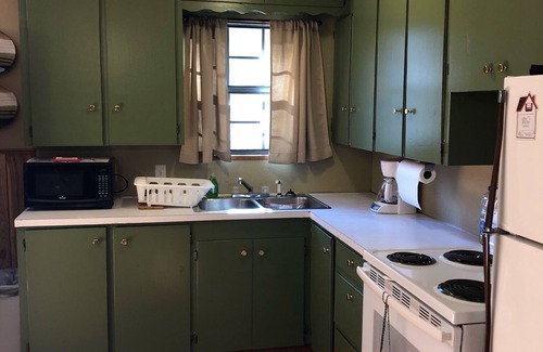 This three bedroom rustic Americana cabin sits on the banks of a nice year-round creek and has scenic views of the surrounding mountains for up to 6 occupants. The North Trailhead of Wolf Pen Gap ATV Trails is within 1 mile, so just unload your side-by-side and hit the trails running. All linens and toiletries are provided. There is a full size kitchen equipped with everything needed to prepare a meal. All you need to bring is your food and drinks. We also have two smaller units, RV spaces and a snack shack with snacks, ice and non-alcoholic drinks. We have a DVD player for use with the TV along with DirecTV service. We have included the cleaning fee with the nightly fee. There is a one-time $25 pet fee for small or service dogs, no large dogs. We also have RV sites for $35 per night. This lodging is available for hunters and fishermen even though hunting and fishing are not allowed on the campground.